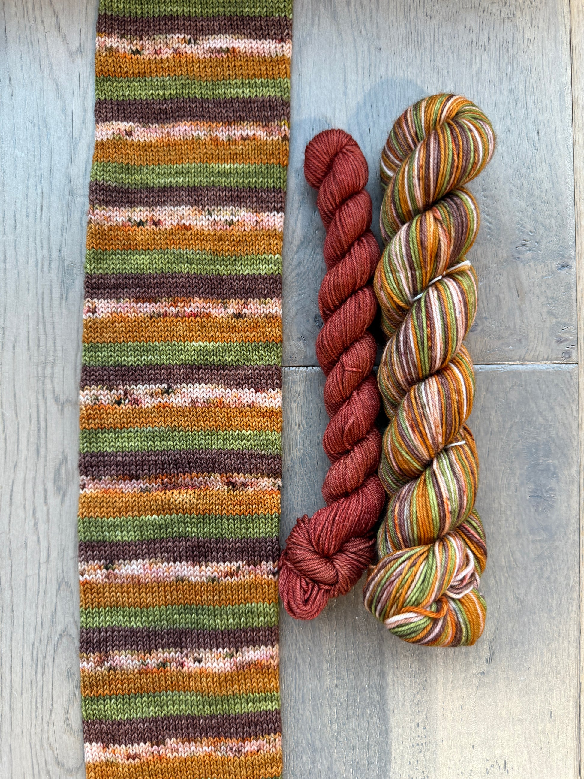 - 1 20g contrasting fingering weight skein in Spice Market