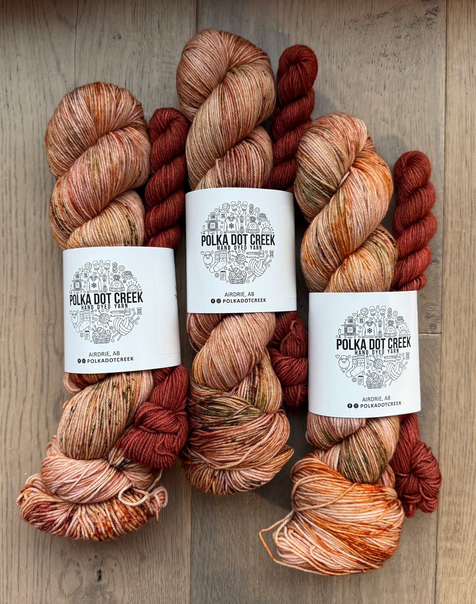 - 1 20g contrasting fingering weight skein in Spice Market