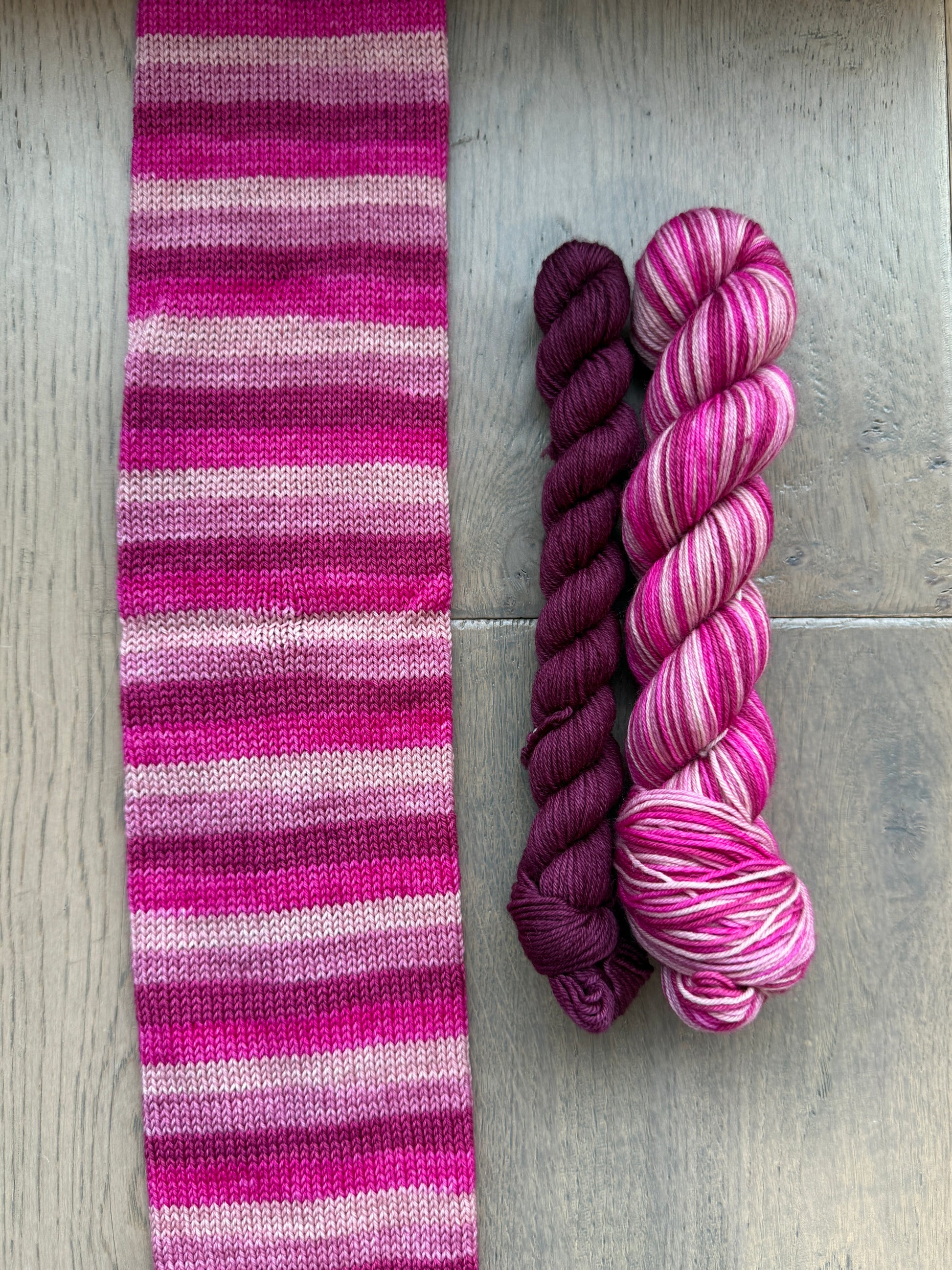 Please note: this sock set generally provides enough yarn for 1 pair of up to size 10 women's socks. We suggest knitting toe-up the first time you use this set and weighing your remaining yarn as you go. If you would like to add a second mini skein to increase your yardage, please select one from our fingering mini collection.