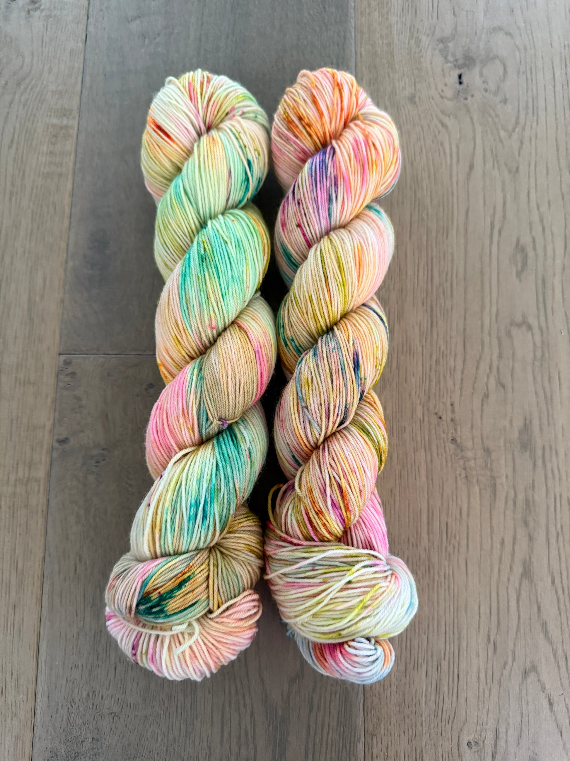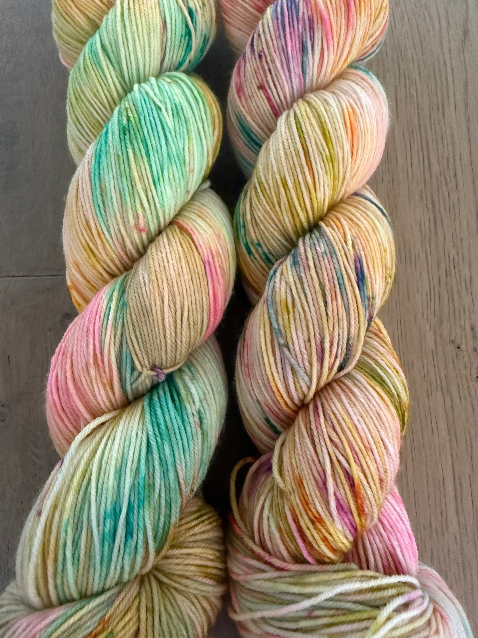 Our platinum base made up of 75% superwash merino, 25% Nylon, its sturdy and strong enough for socks, but soft and delicate enough for shawls, cowls, blankets and sweater.