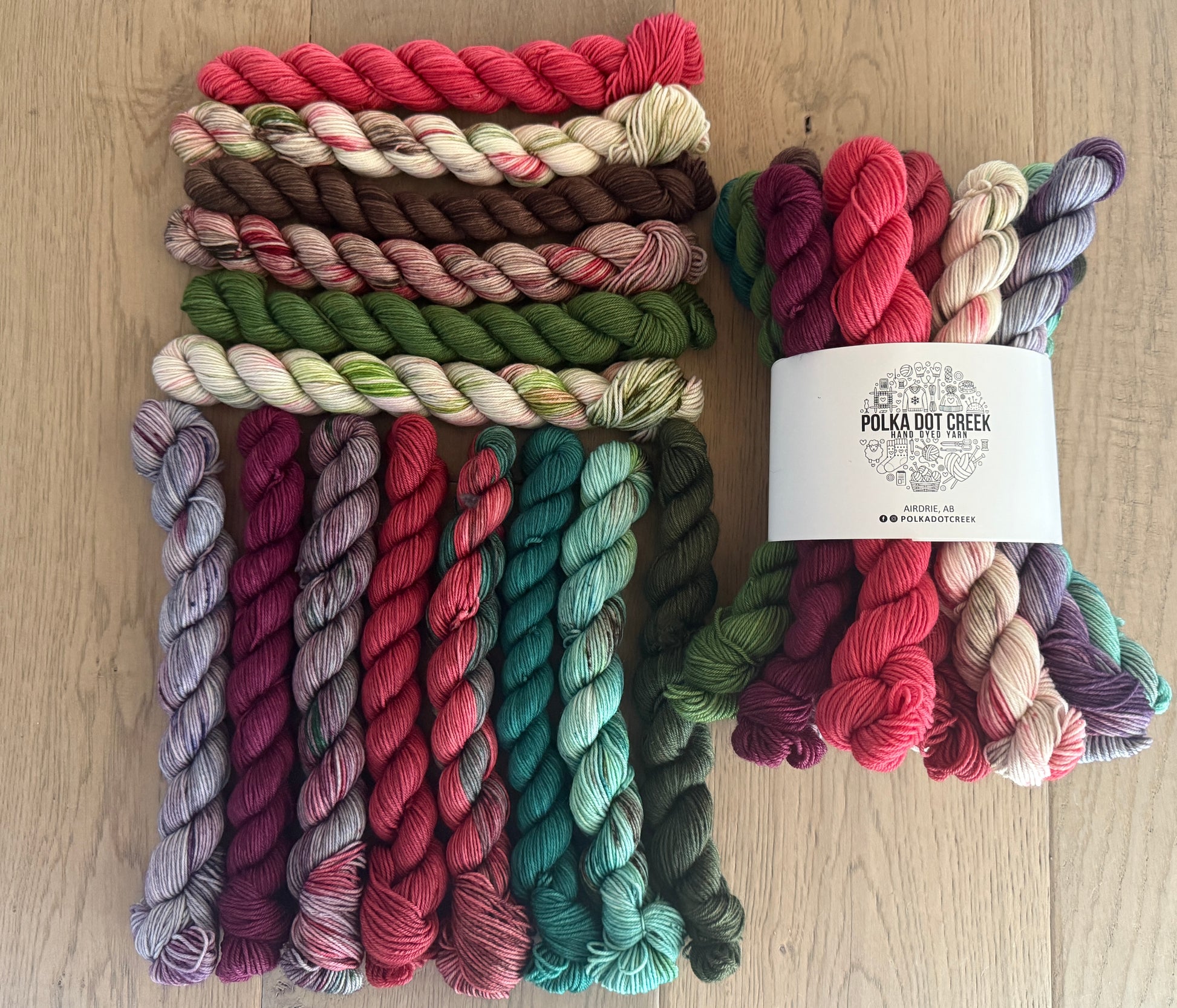 20g/92 yards per mini skein. 75 %superwash merino, 25% nylon. Fingering.
